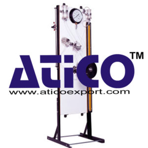 The apparatus consists of a panel for wall mounting on which are fitted -1.0 to 20 kg/cm2 x 0.1 kg/cm2 a pressure gauge, Bourdon tube type 20 cm dia.