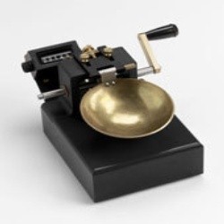 - Comprises: removable brass cup, adjustable crank and cam mechanism, blow counter, and base.