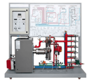 This module for the production of hot water is specifically designed for educational aims and it can be easily connected with dissipation modules. It includes a hot water boiler with oil burner, the relevant safety devices and utilities, as well as a system for the distribution of water to the users; it consists of visible and easy to access industrial components and instruments, correctly connected and operating.